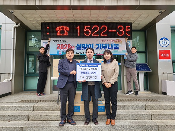 [조이뉴스24 양찬희 기자] 경기도 평택시는 기아 신평대리점이 설 명절을 맞아 비전2동 행정복지센터에 지역 내 취약계층을 위한 명절 선물 세트 75박스를 기부했다고 밝혔다.